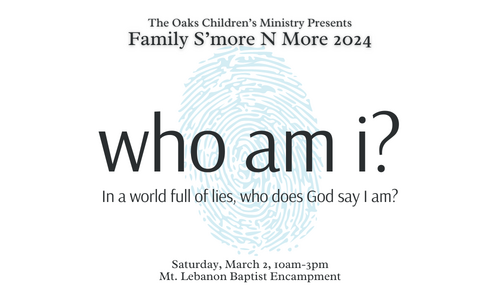 One of the biggest questions every child struggles with is “who am I?” Sadly, the world we live in offers kids a variety of lies for an answer. Join us for Family S’mores N More as we explore who God says we are and equip parents to guide their children through a dark world full of false truths.